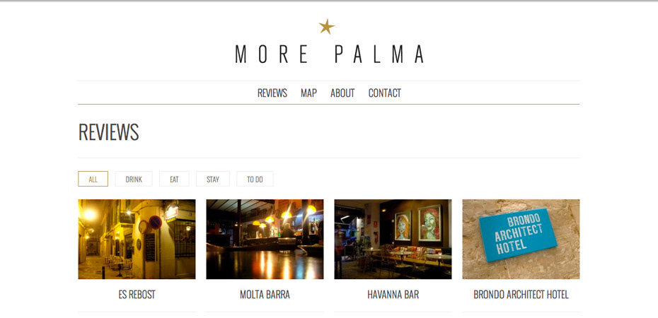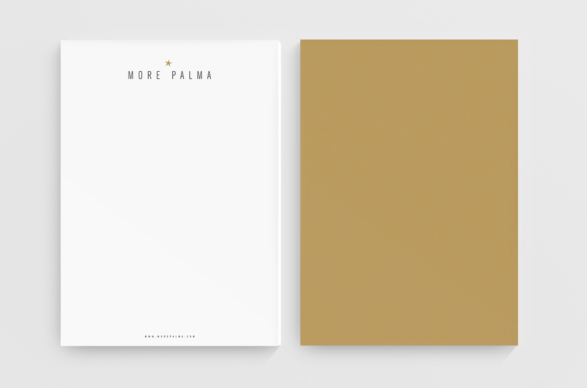 Logo and stationery for More Palma, a Palma de Mallorca review site.